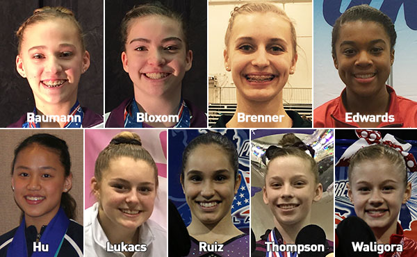 The nine gymnasts determined last weekend are listed below, by the invitational where they qualified.