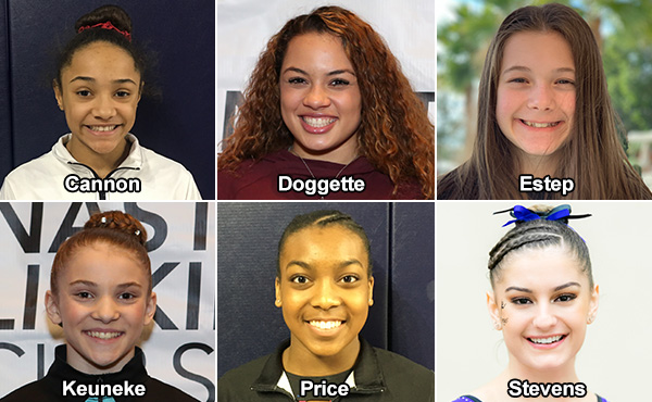 - WOGA Classic, Frisco, Texas: Daisha-Marie Cannon, Spring, Texas/World Champions Centre, junior; and Frankie Price, Coppell, Texas/Texas Dreams, senior.